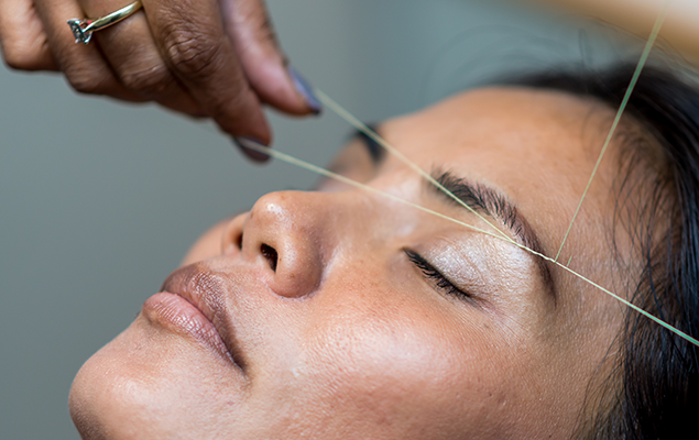Eyebrow Threading is a practice of shaping the eyebrows using a cotton thread.The twisting action of the thread traps the hair and lifts it out of the follicle.It’s a very gentle, sanitary, and painless way of removing unwanted facial Hair.